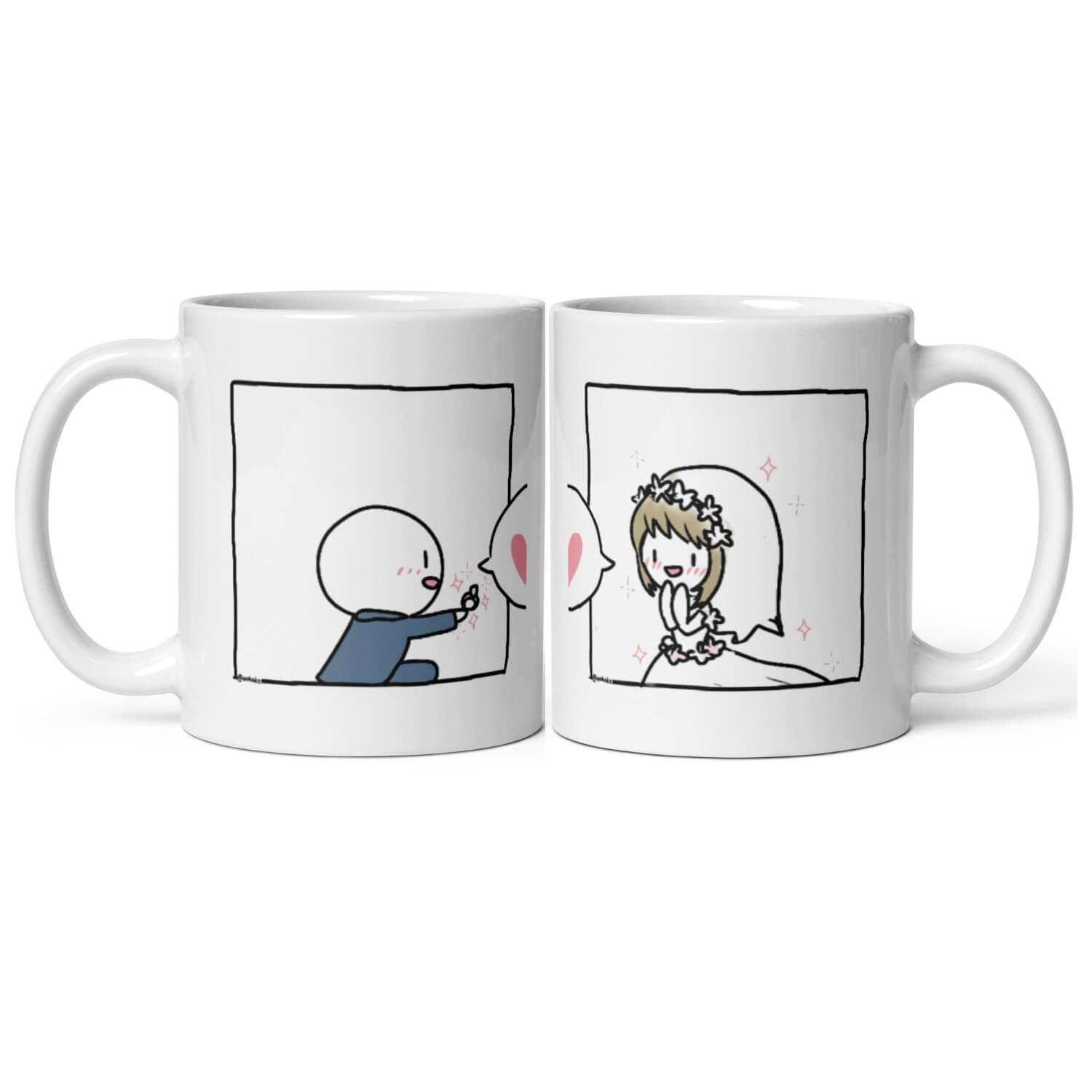 Mô tả sản phẩm Bộ hai Ly sứ hình trọc trắng cầu hôn dành cho cặp đôi