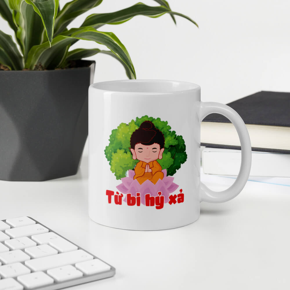 • Tên sản phẩm: Ly sứ hình Phật giáo từ bi hỷ xả