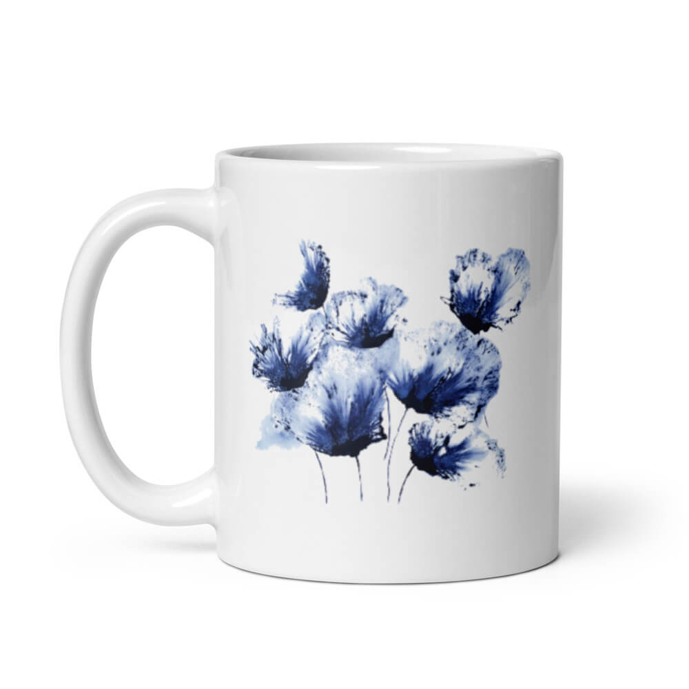 Cốc sứ hình vẽ hoa màu xanh trừu tượng
