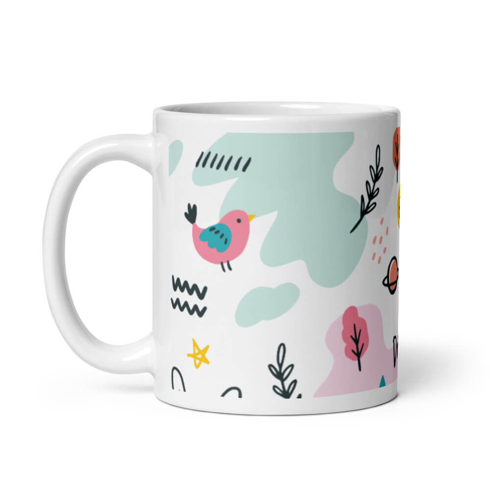 Cốc sứ họa tiết hình chim và chữ