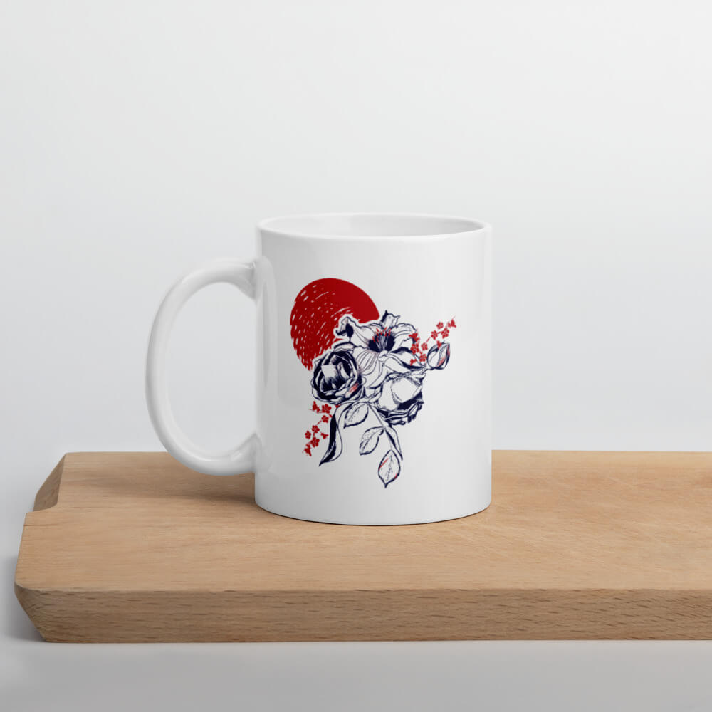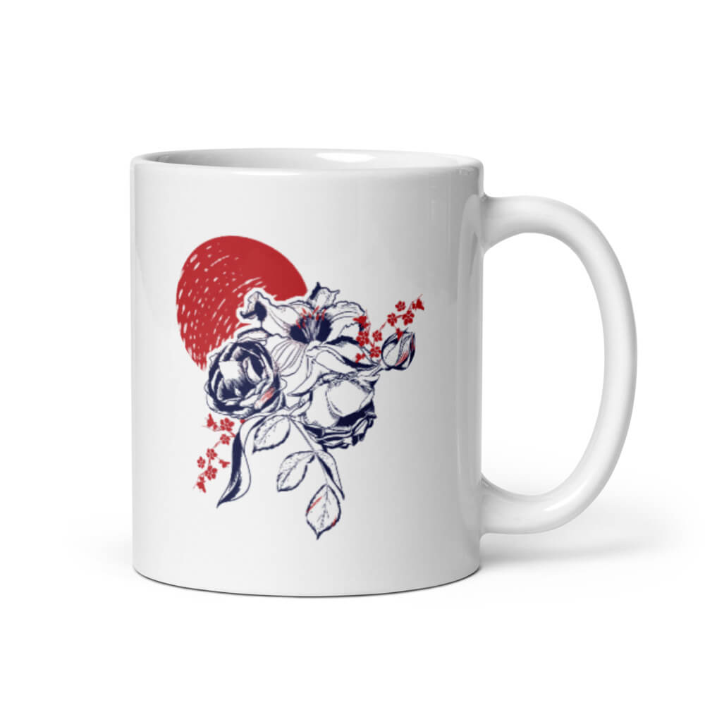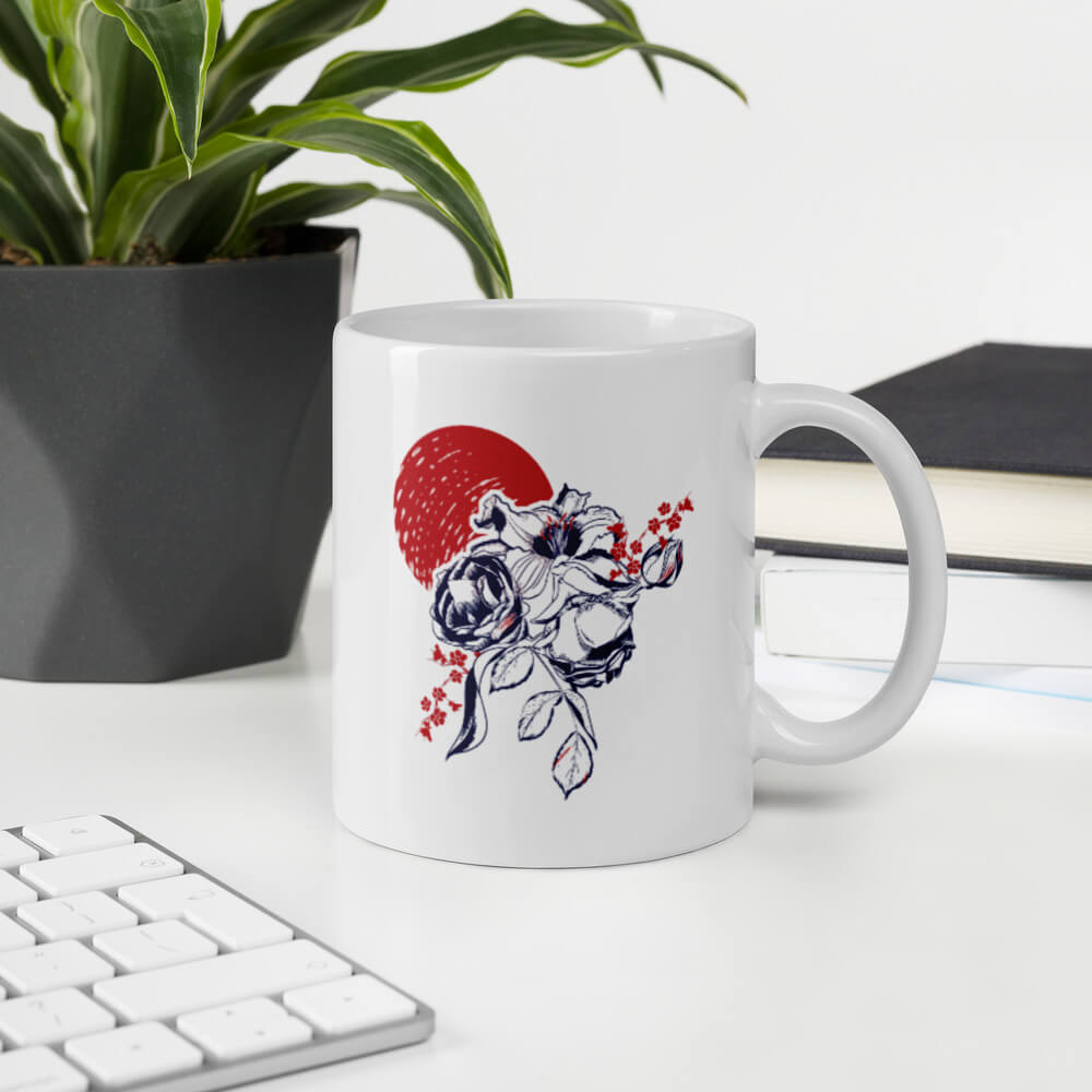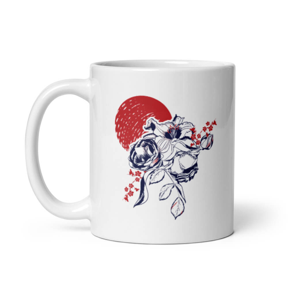 Mô tả sản phẩm Ly sứ hoạ tiết hình hoa màu xanh đỏ cá tính