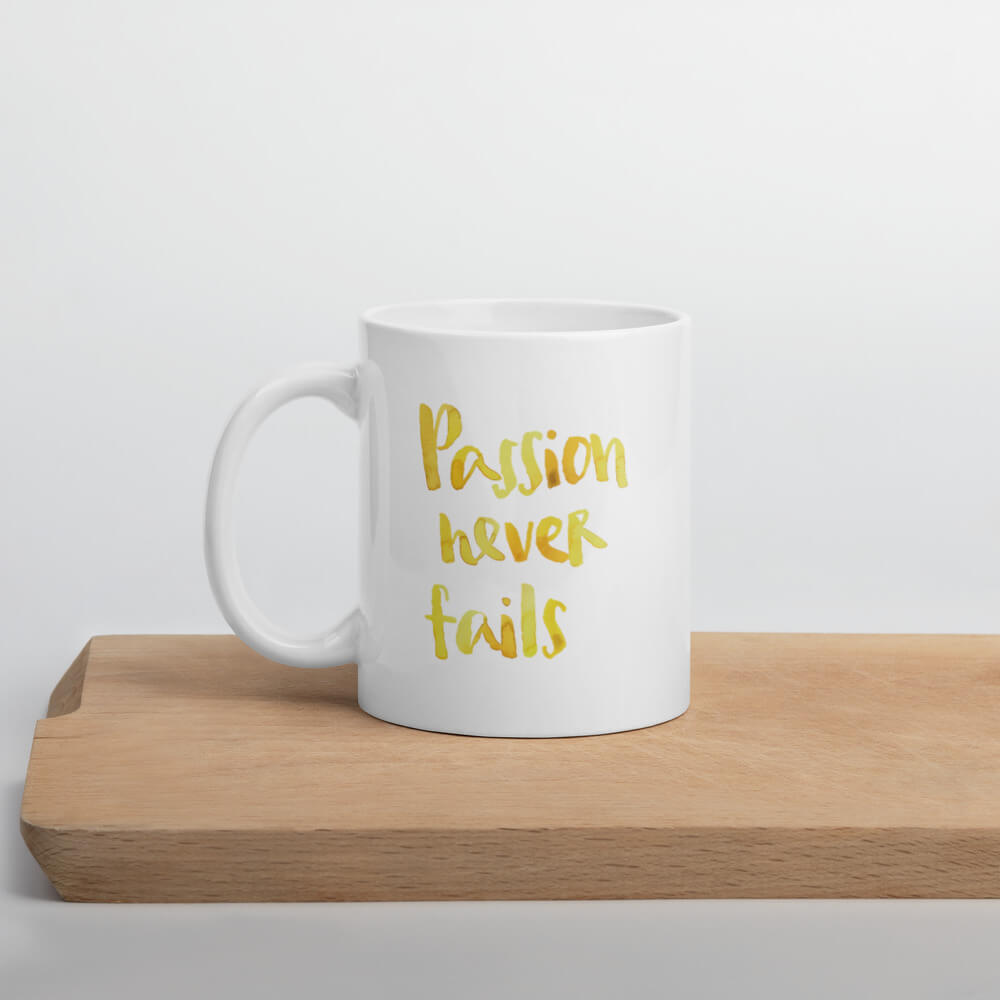 Mô tả sản phẩm Ly sứ kiểu chữ hình Passion Never Fails